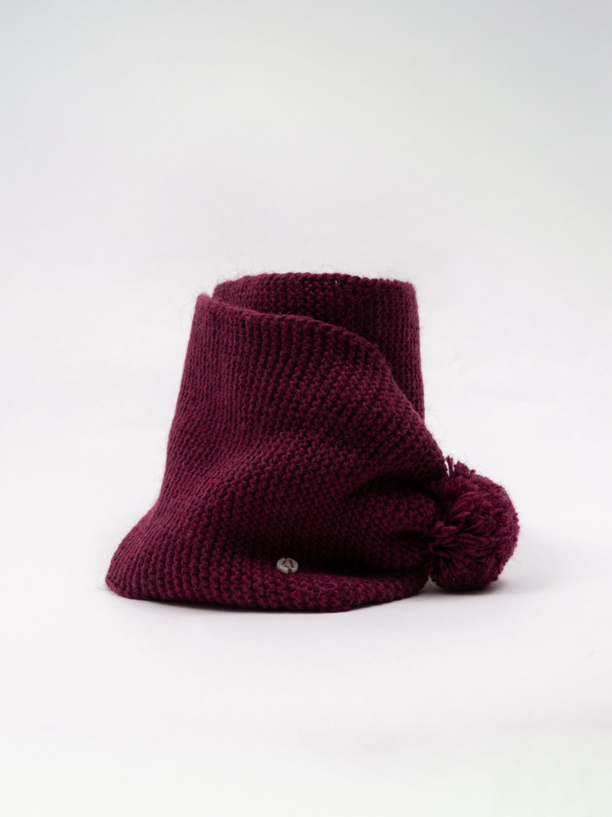 BUFANDA LINKS POMPONES GRANATE