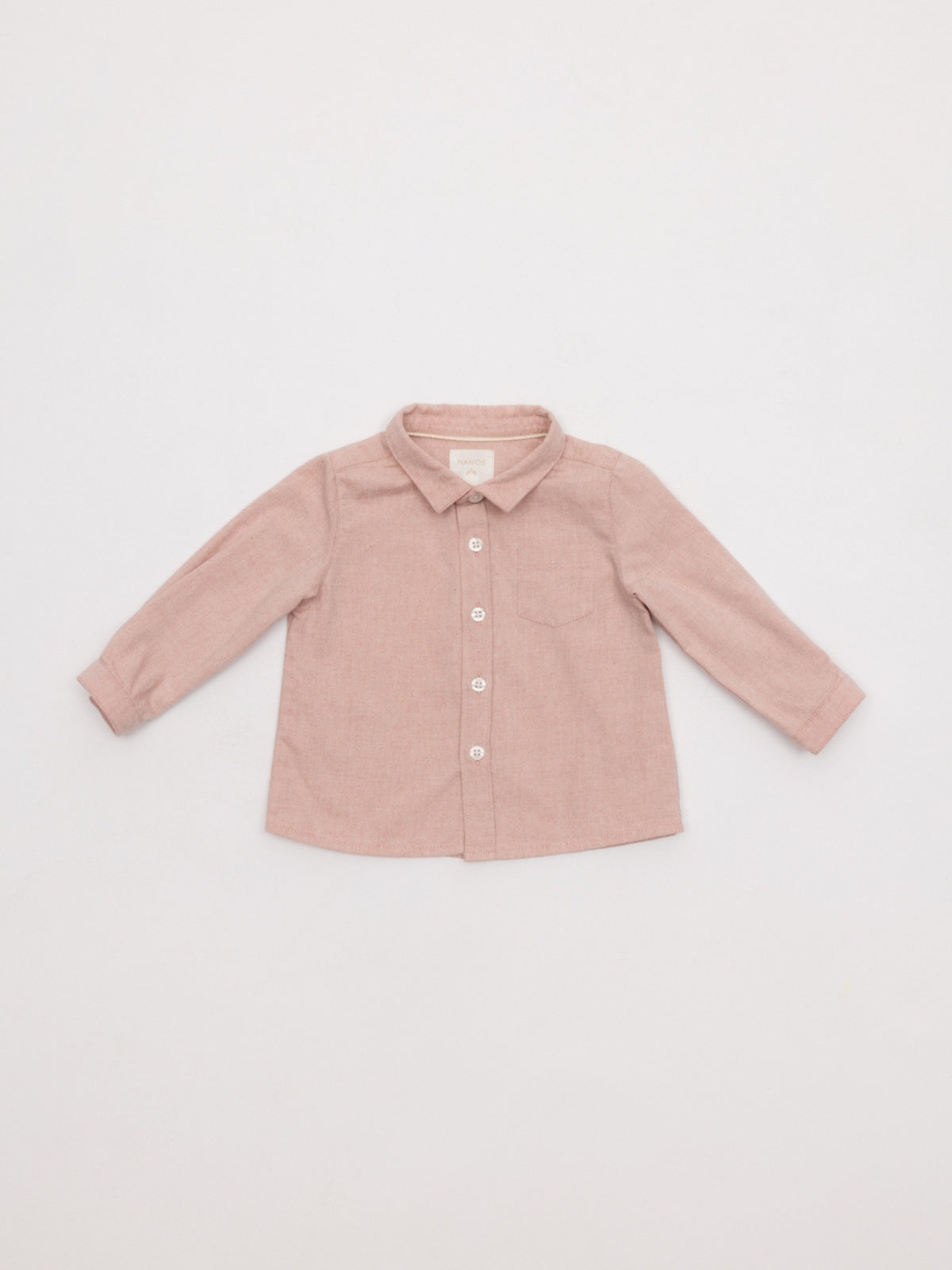 Camisa oxford para bebé niño en color granate claro. Confeccionada en 100% algodón. Detalle bolsillo en frontal izquierdo. Pliegue en canesú trasero. Perfecta para combinar en cualquier momento, ofreciendo un toque elegante y confortable en cada ocasión.