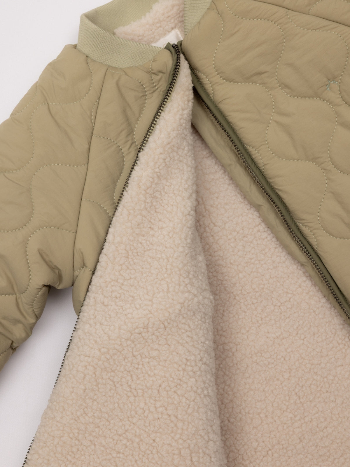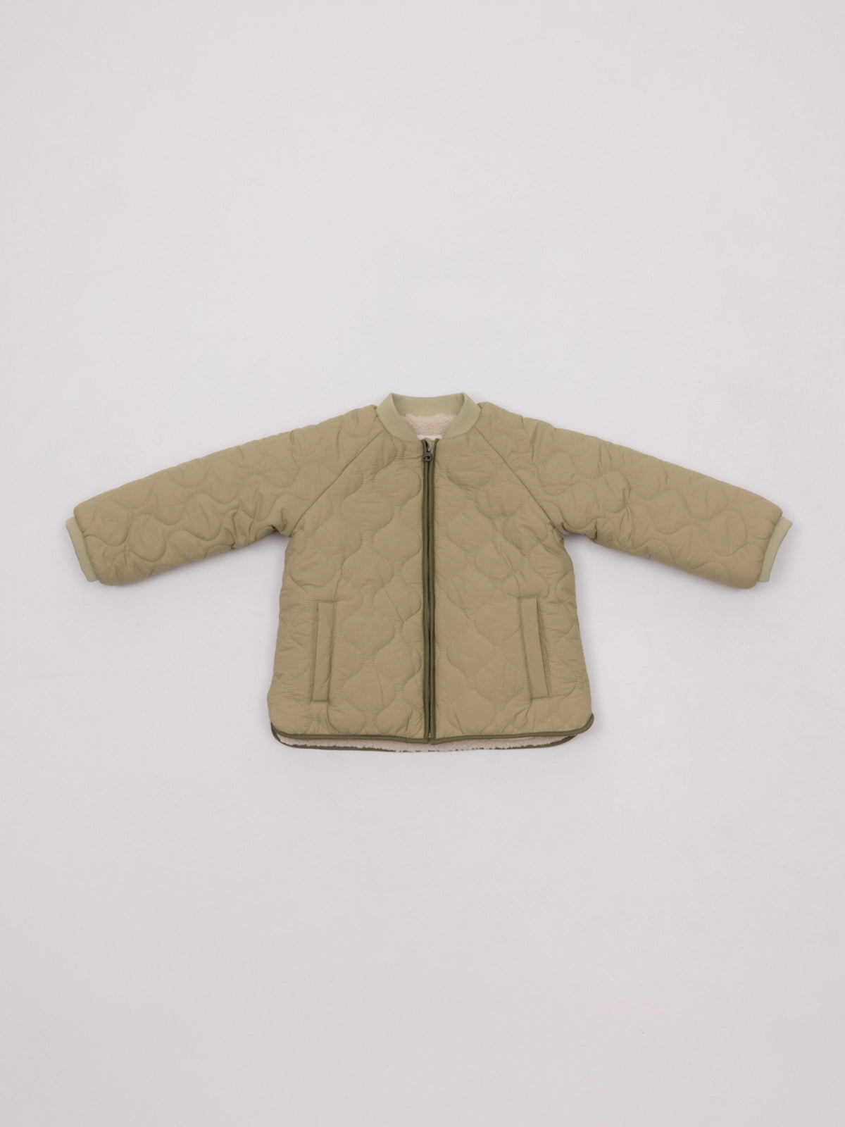 Cazadora acolchada para niño en color verde. Cierre con cremallera. Gomas en puños. Forro interior de borreguillo. Una cazadora calentita y cómoda, ideal para los días más fríos.