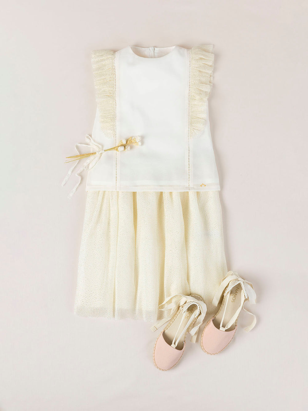 Alpargata lazo tobillo para niña en color azul claro. Exterior confeccionado en 100% algodón. Forro confeccionado en 100% piel porcina. Suela confeccionada en 85% yute y 15% goma. Producto fabricado artesanalmente en España. Detalle logo Nanos en interior.